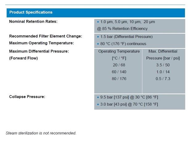Sợi polypropylen được thổi liên tục vào lõi hỗ trợ trung tâm, không cần chất kết dính, nhựa hoặc chất bôi trơn. Kết quả của cấu trúc kết nối có khả năng chống tải và đổ với những phương thức lọc. Lọc độ sâu có kết quả thực sự từ việc sản xuất sợi, được kiểm soát chặt chẽ trong sản xuất và môi trường xử lý đảm bảo yếu tố chất lượng cao đáng tin cậy.